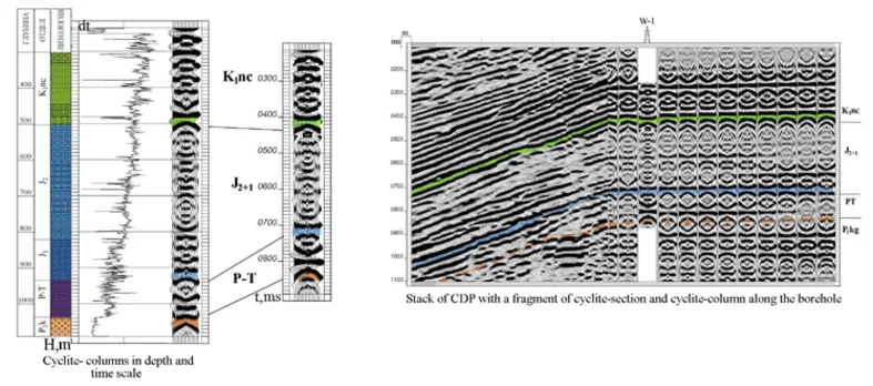 – To accomplish stratigraphic identification of the reflecting horizons, using logs in form of cyclites.
